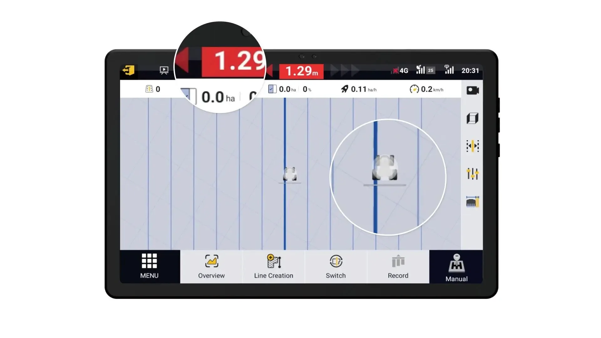 Valt het signaal even weg, dan zorgt de ALS-functie dat je nauwkeurig kunt doorwerken tot het RTK automatisch terugkomt. Wil je zelf het stuur overnemen, dan reageert het systeem direct en schakelt veilig uit. Zo blijf je onder alle omstandigheden precies en betrouwbaar aan het werk.